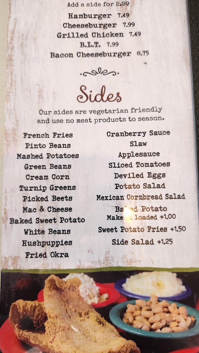 “ We arrived around 3pm central time on a Tuesday. We were quickly seated and the waitress was very friendly and attentive. Our food arrived hot and was all very good. We had the chicken tenders, chicken fried steak, mashed potatoes, turnip greens and fried okra. All very tasty. The salad with fried chicken was also very good. The wings are amazing too! We bought a chocolate cream pie to eat at home. Wonderful place to view the fall leaves! ”